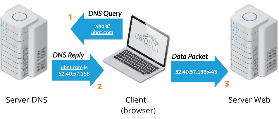 Per poter stabilire una connessione, qualsiasi client dovrà in prima battuta convertire il DNS (il nome del sito) in indirizzo IP. Per farlo avvia una richiesta di risoluzione DNS al sistema operativo.