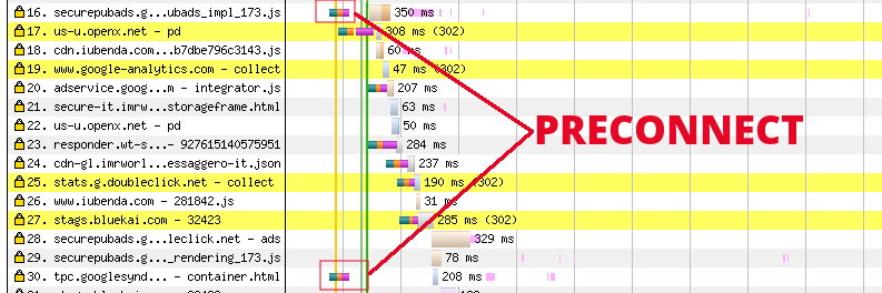 La tecnica preconnect è simile alla dns-prefetch. A differenza di quest’ultima non si limita solo a risolvere il DNS ma ad instaurare una vera e propria connessione.
