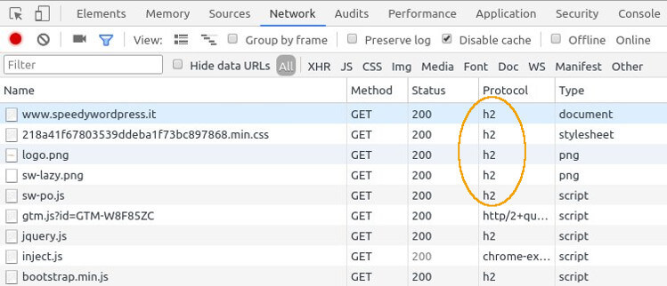 Per verificare se un sito web supporta HTTP/2 basta visitarlo, aprire la Chrome DevTools, posizionarsi sul tab Network, cliccare con il tasto destro sulla tabella e abilitare la visualizzazione della colonna Protocol se non già visibile ed aggiornare la pagina. Se il sito supporta HTTP/2, le risorse scaricate dallo stesso avranno h2 come protocollo.