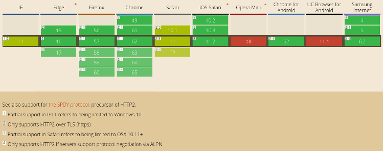 Ad oggi più del 77% dei browser supporta HTTP/2, tuttavia alcuni non lo supportano ancora in tutte le sue caratteristiche. Di seguito la lista completa dei browser che supportano HTTP/2. È possibile verificare via via il supporto cliccando qui.