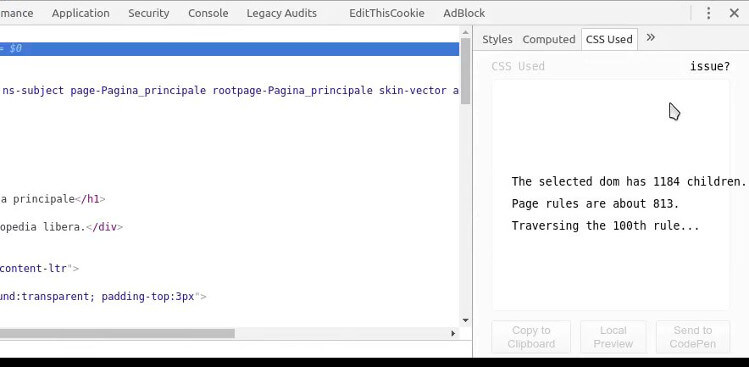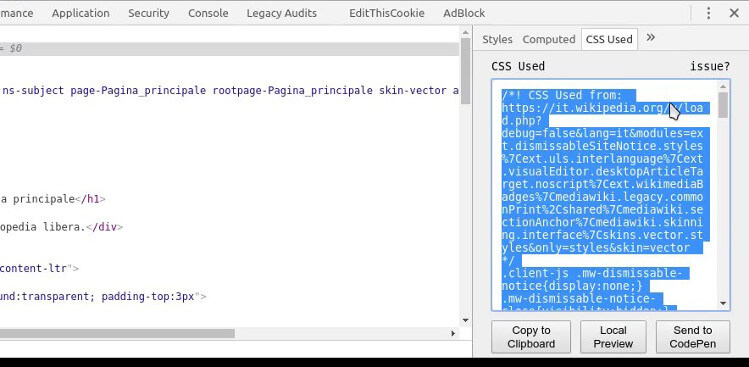 Per estrapolare questo 37% di CSS utilizzeremo un’estensione di Google Chrome denominata CSS Used. L’utilizzo è semplicissimo: