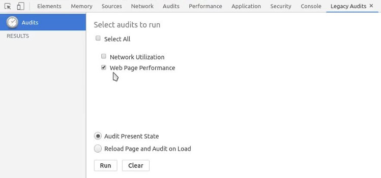 Spuntare le opzioni Web Page Performance e Reload Page and Audit on Load e cliccare su Run. A questo punto la pagina verrà ricaricata ed inizierà il processo di elaborazione che visualizzerà il quantitativo di regole CSS inutilizzate e consentirà di vedere, CSS per CSS, le singole regole ed annotarle.